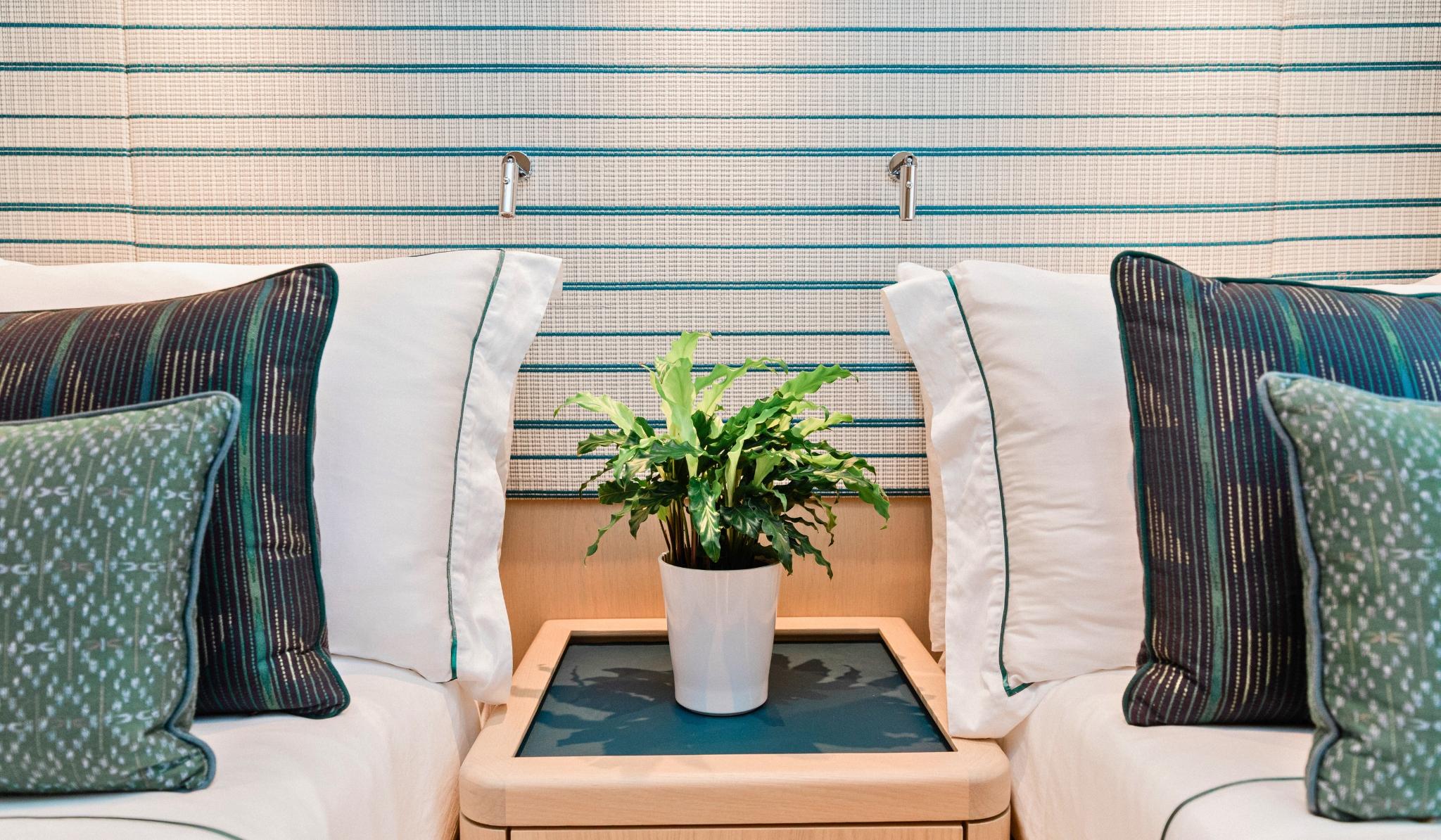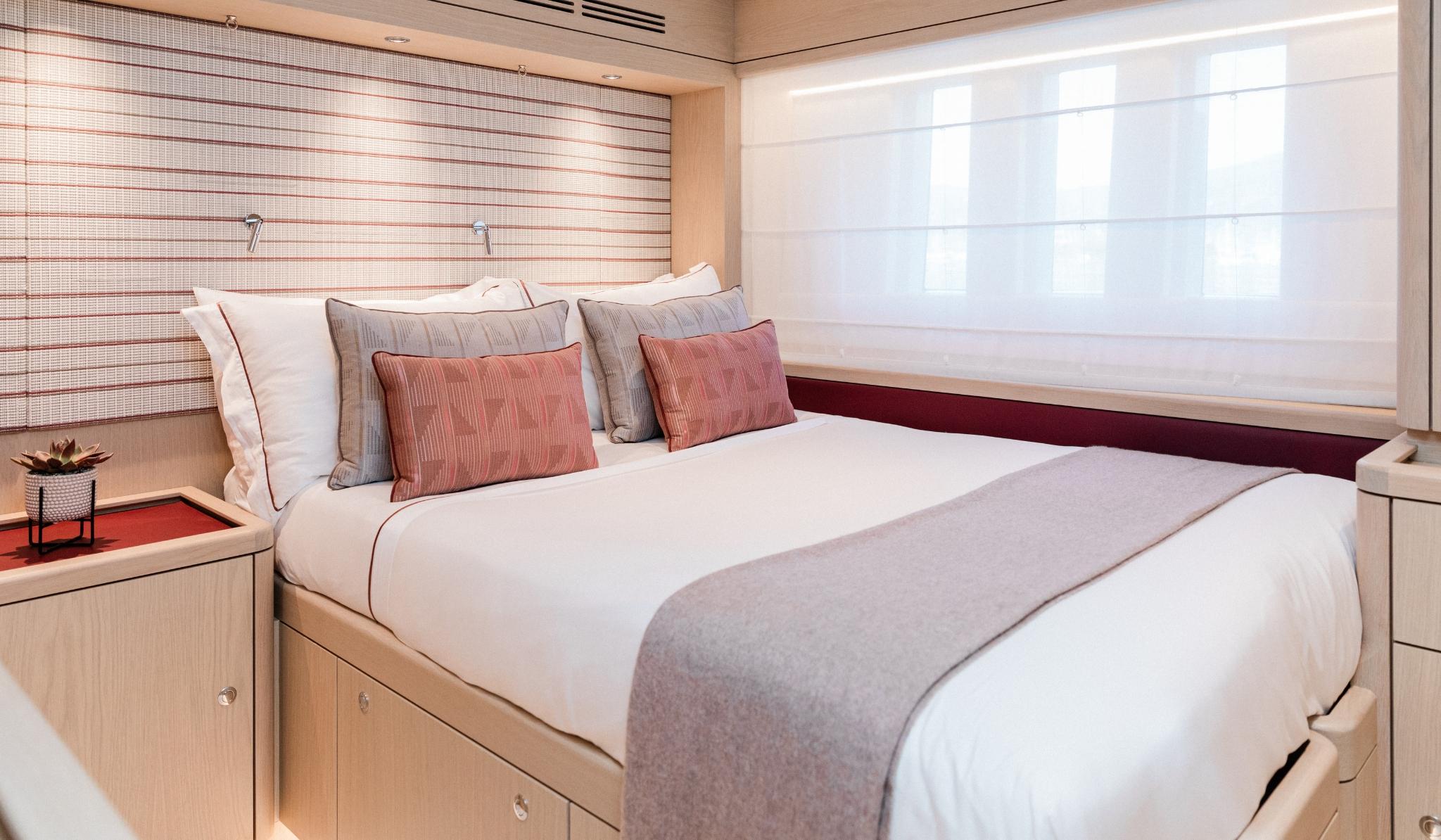 With four comfortable cabins, Sunyo maximises accommodation options with a perfect set-up for two families with children or a group of friends or relatives. The interior is comfortable and luxurious. Aft of the saloon is an impressively spacious master cabin with a King size bed, a Queen size bed and two convertible guest cabins that can be set up as double or twin beds, while there is a fixed double forward cabin.