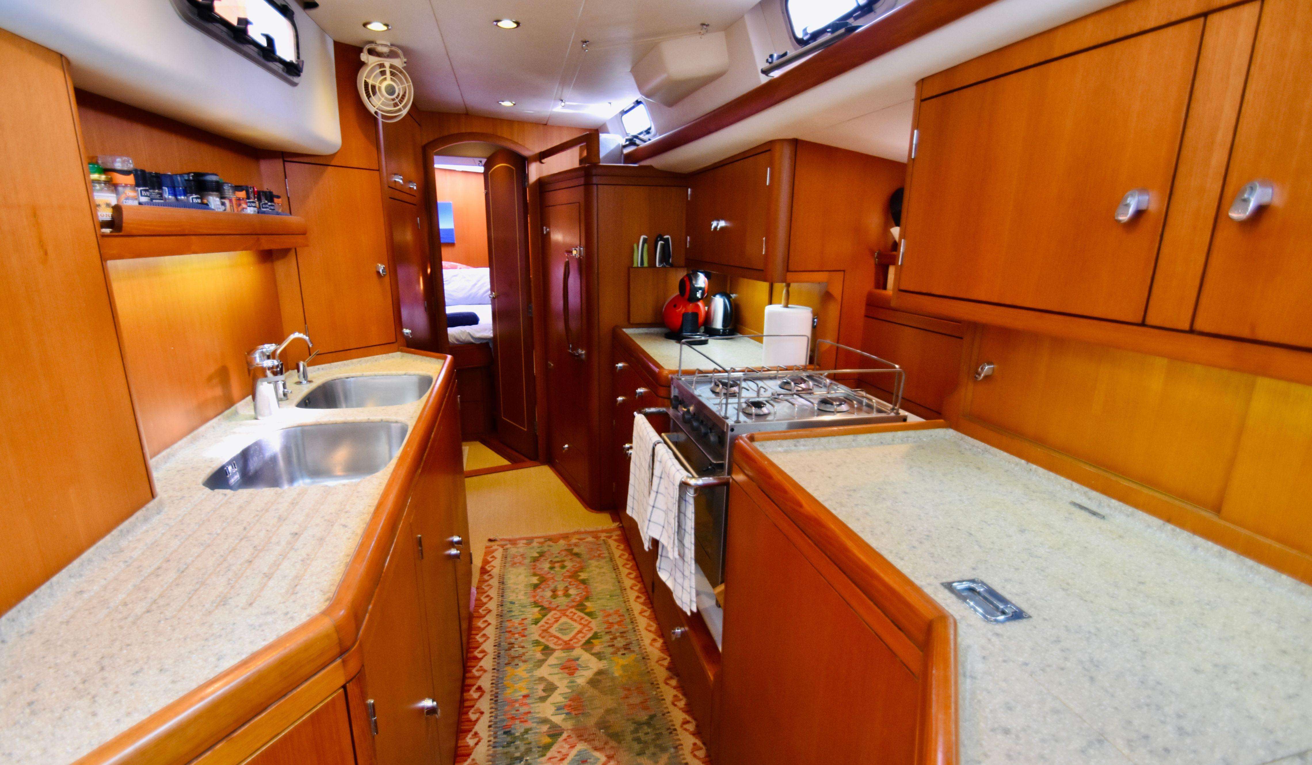 Performance under sail is excellent with 200 mile days in full cruising trim possible. The 62 has had easy class wins in the ARC, also getting cruising line honours and being the first to finish in all cruising classes with 178 yachts astern. In Antigua Sailing Week, a 62 won all five races in Cruising Class 1. An accomplished circumnavigator, the 62 Quest was sailed around the world with a very young family and without crew. America’s Cup and Fastnet winner, Gary Jobson sailed a 62 to the Arctic, reaching 80 degrees north.