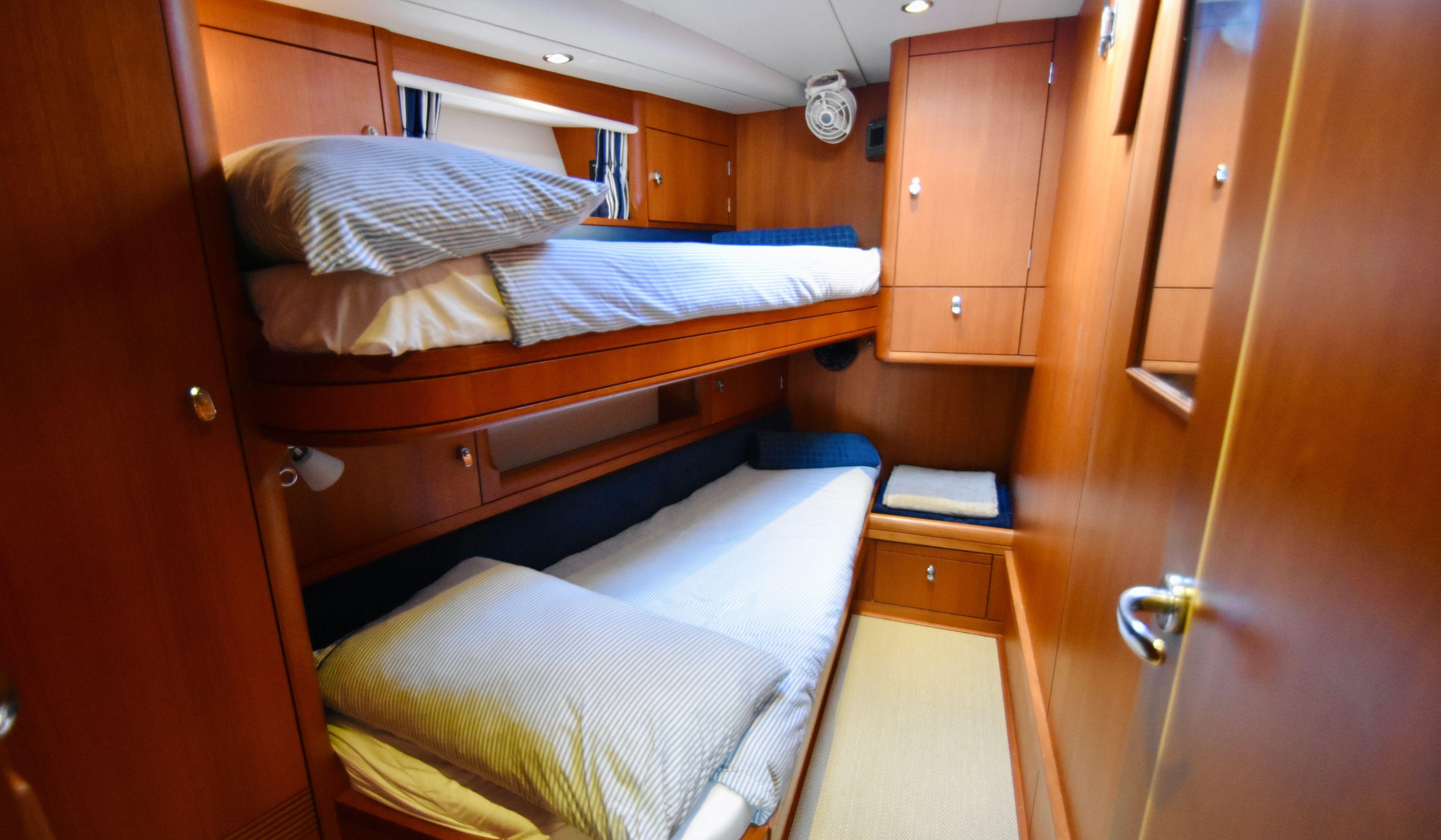 | CABINS | Seven berths in four cabins, plus two fo'c'sle pipe cots |