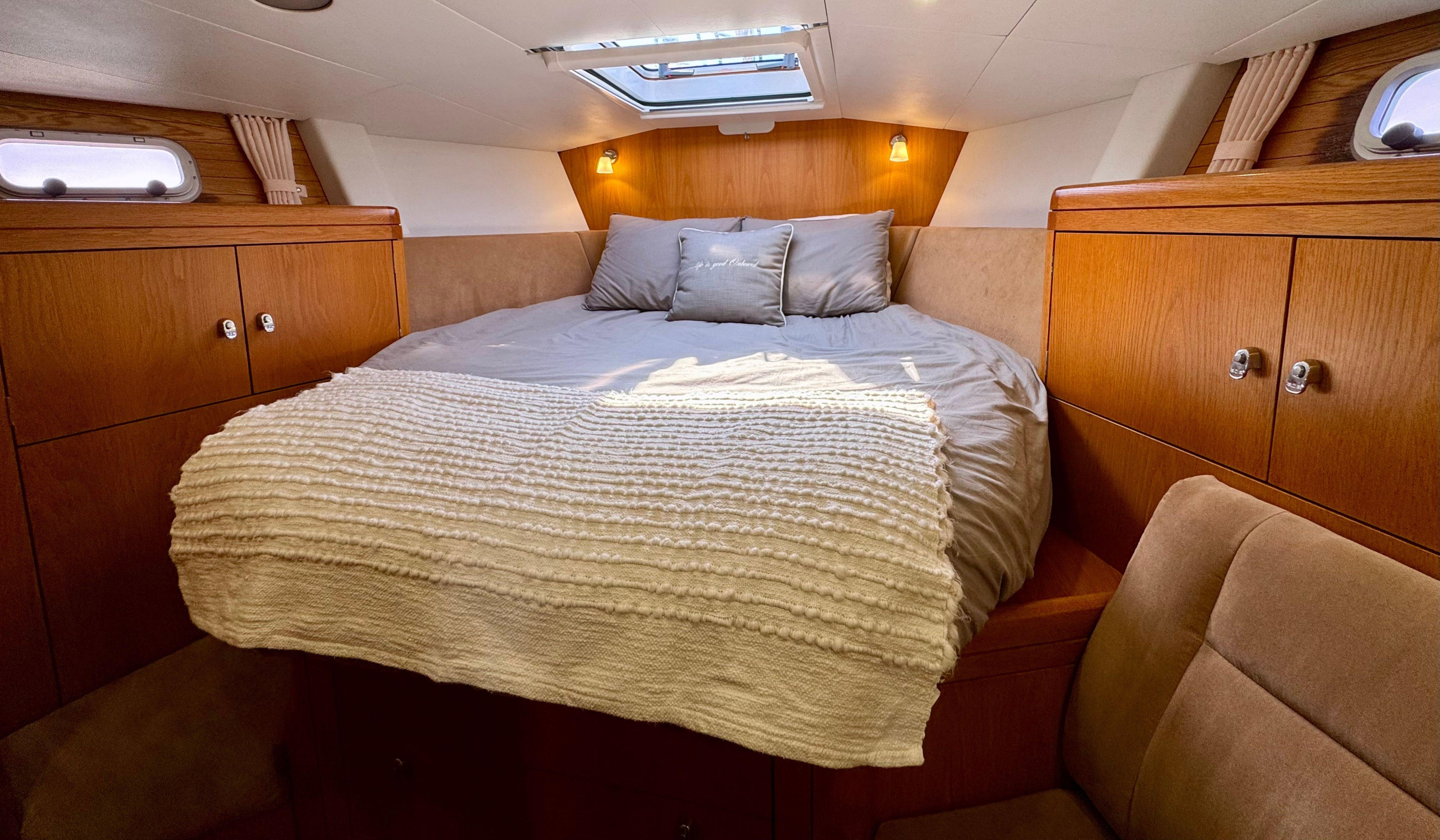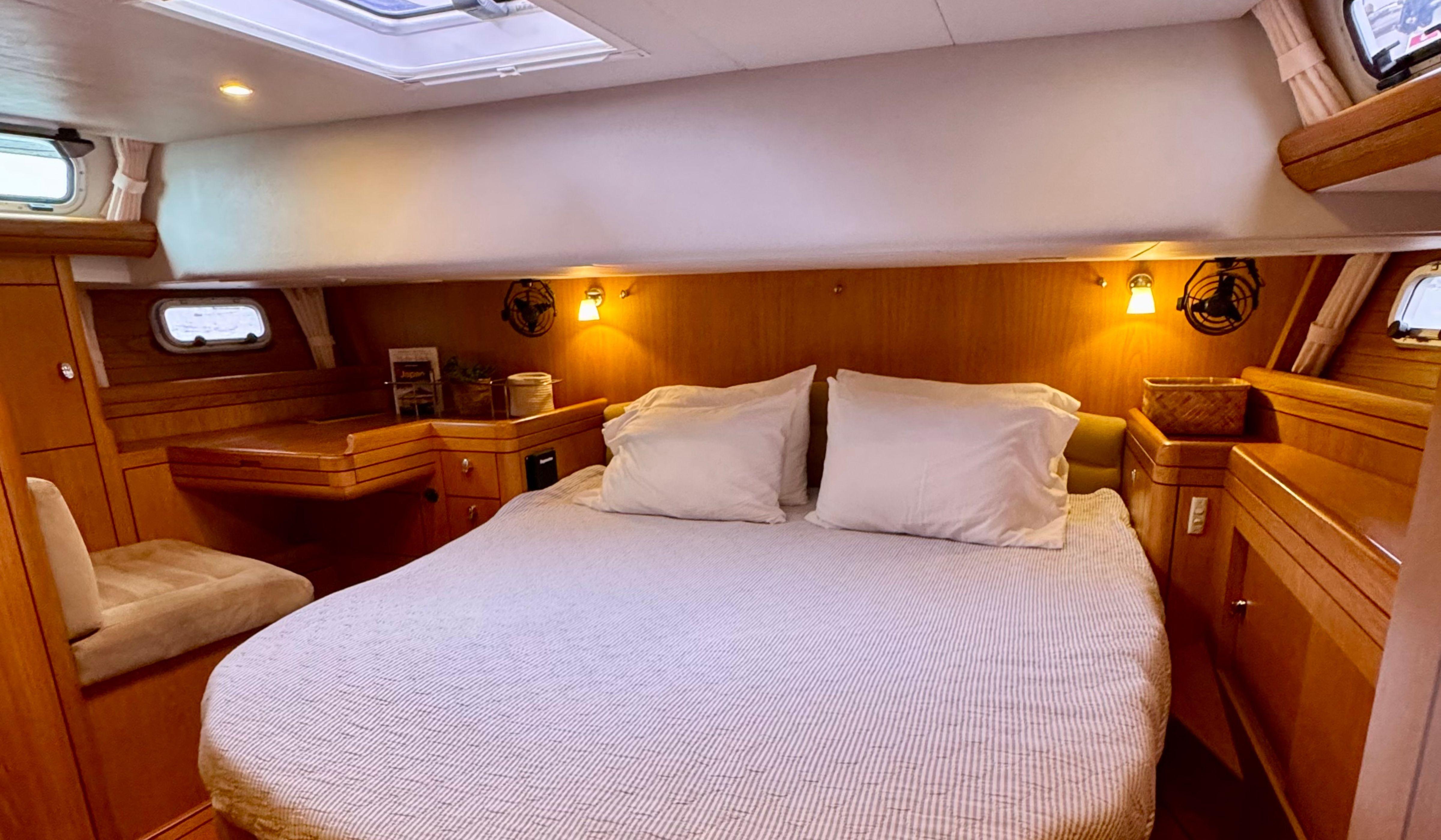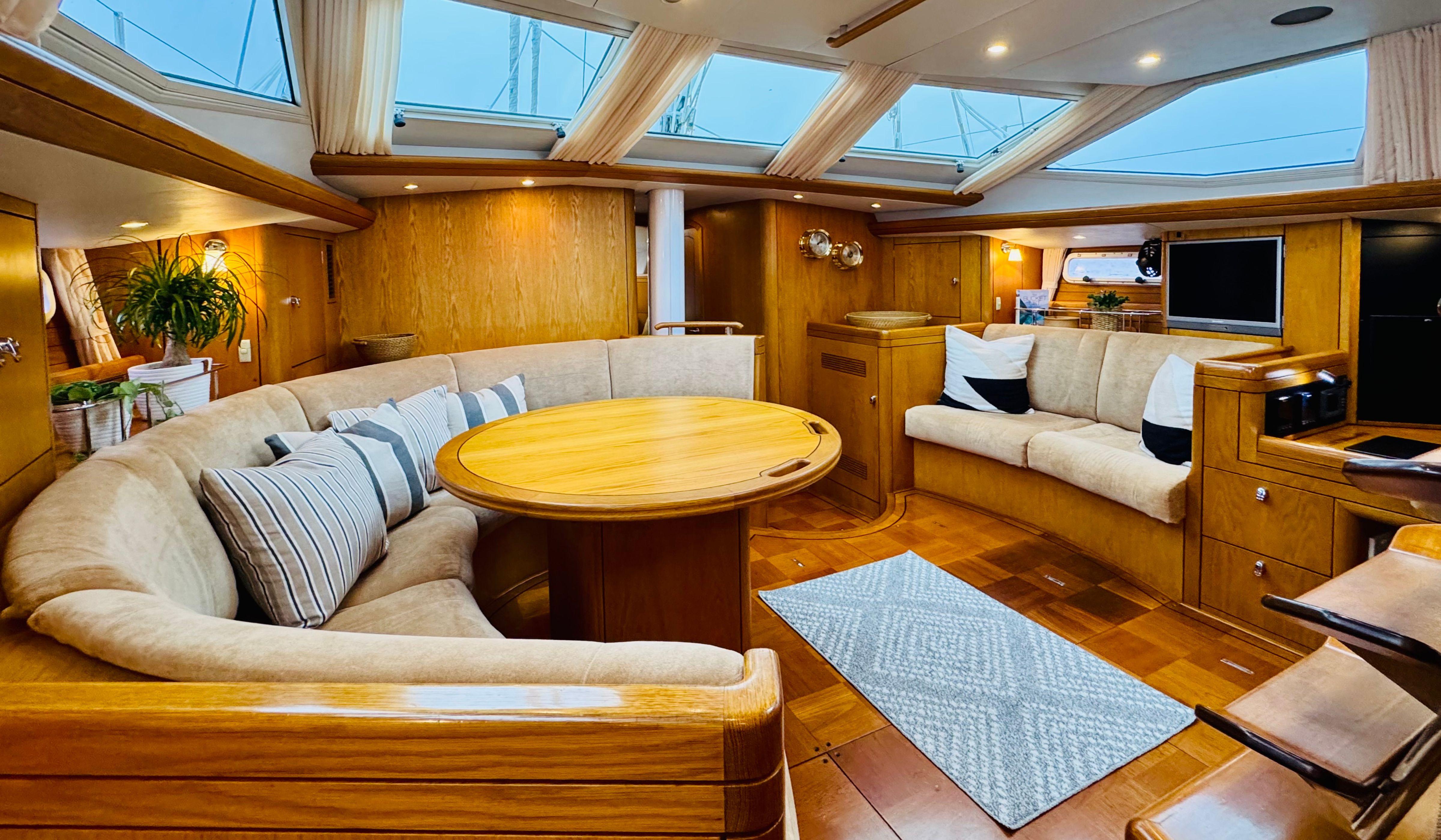At just under 60 feet, the 56 offers the ease of handling that an experienced couple can manage comfortably, yet she provides the space and volume to accommodate family and guests in four cabins, sleeping seven in comfort. Her cutter rig with hydraulic in-mast furling and headsail furling, electric winches, and thoughtful deck layout make short-handed sailing simple and secure, whether coastal cruising or crossing oceans.