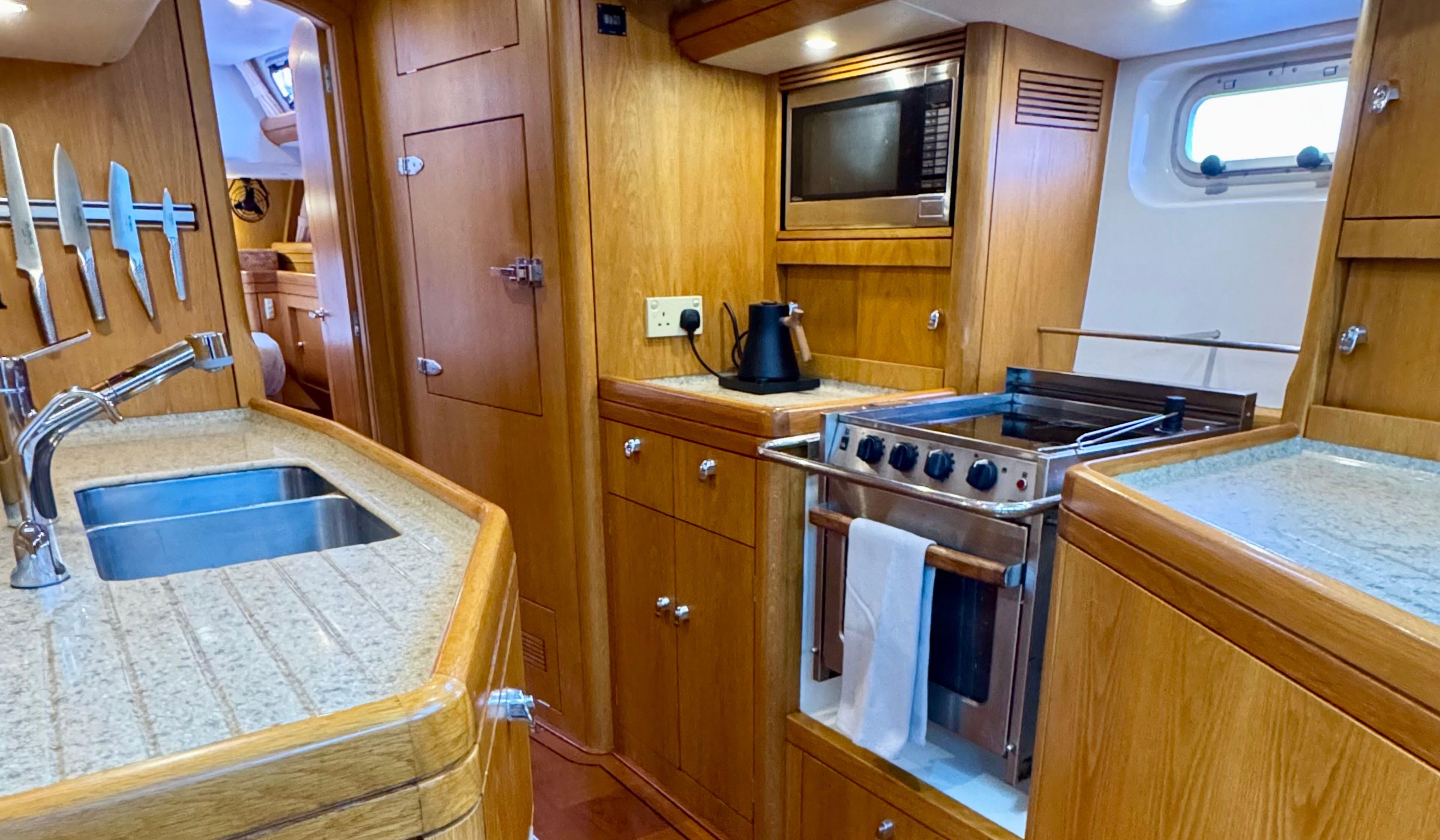 The 56 was the first yacht with an ergonomically designed cockpit, the result of working with Loughborough University's Ergonomics department, making relaxing and entertaining a true pleasure, whilst maintaining all the essential qualities you expect from a serious seagoing yacht. She’s a proven performer with class wins in the ARC, and also winning Cruising Class 1 at Antigua Sailing Week, beating a number of more serious racing competitors.