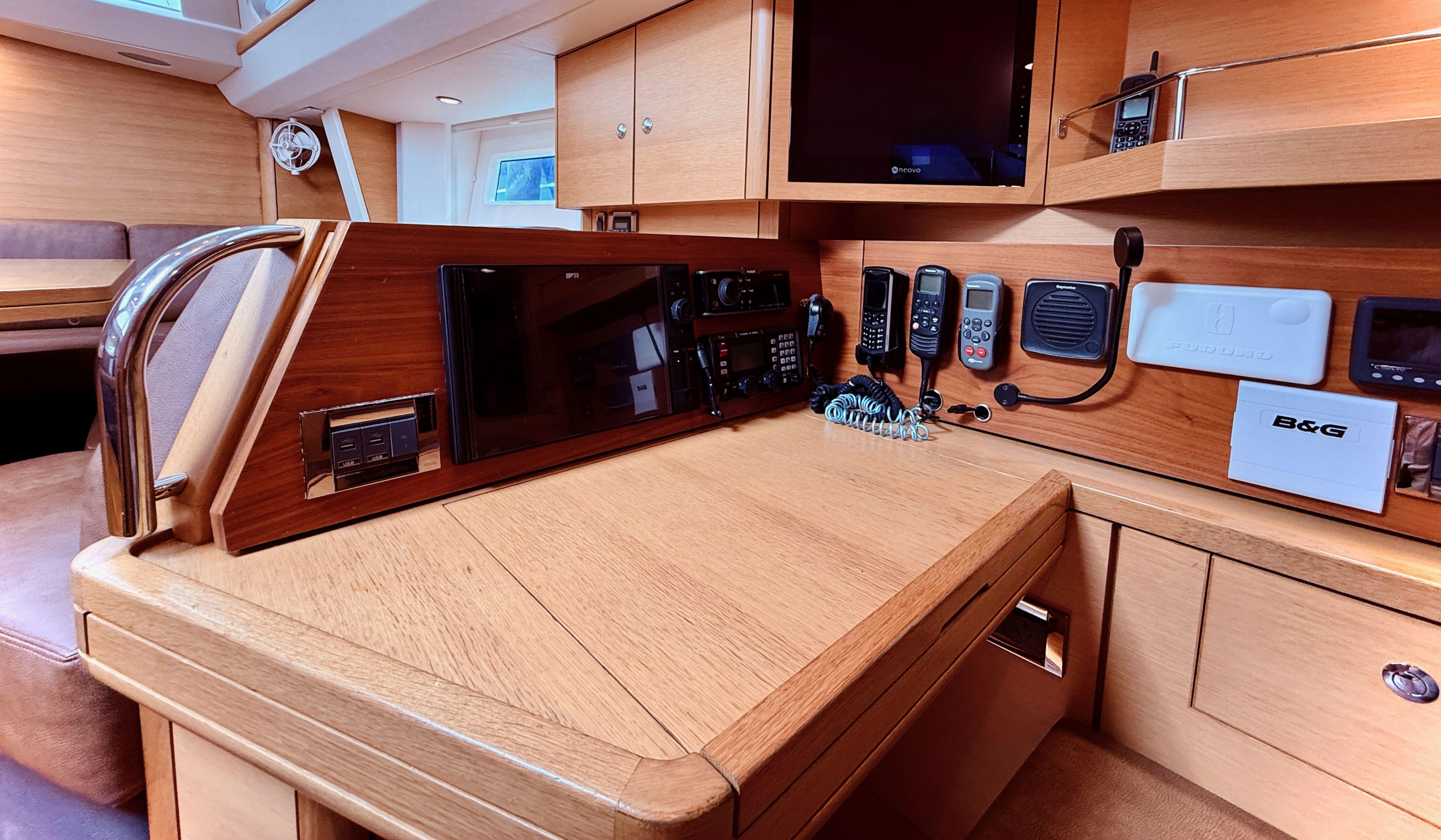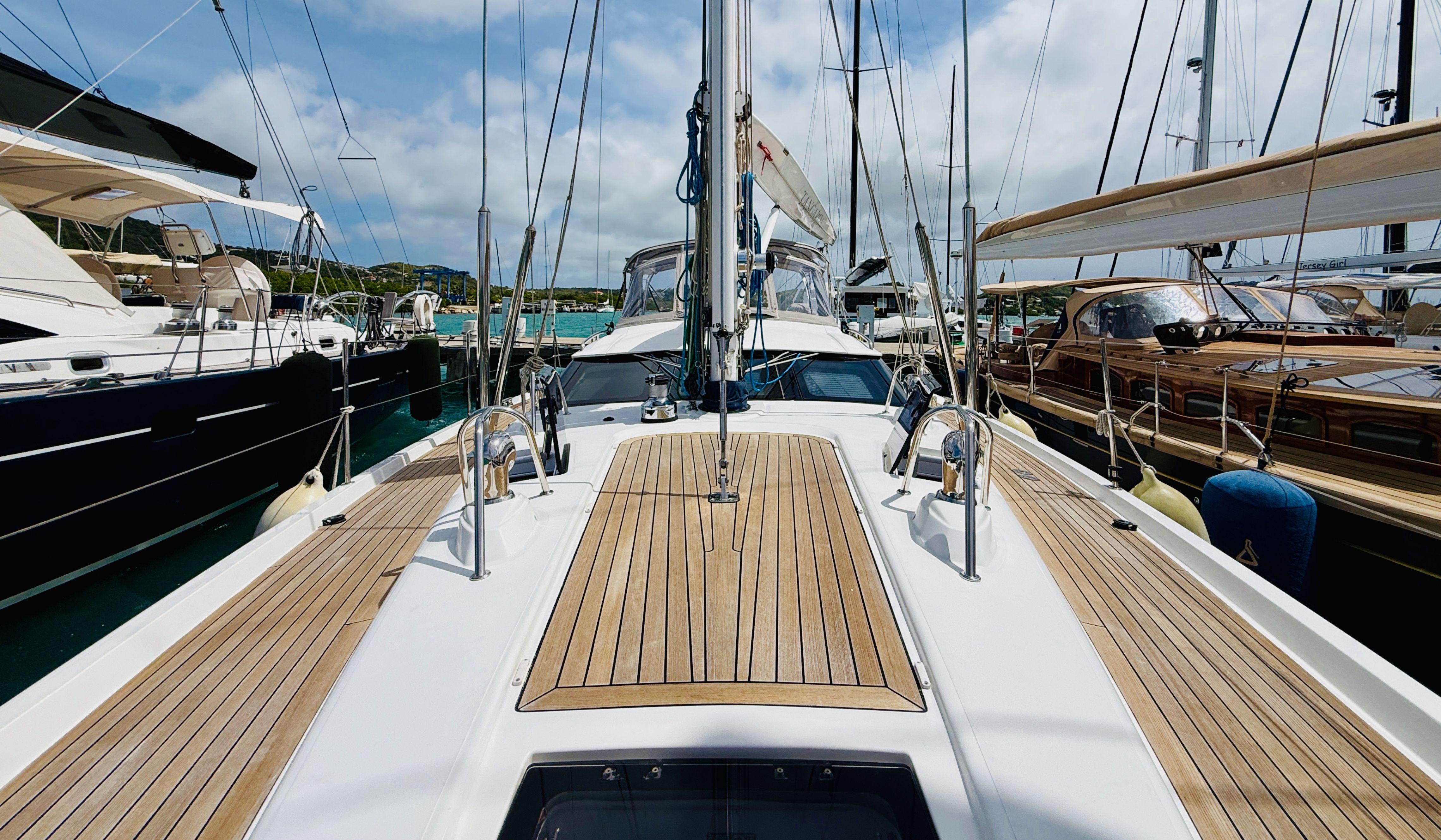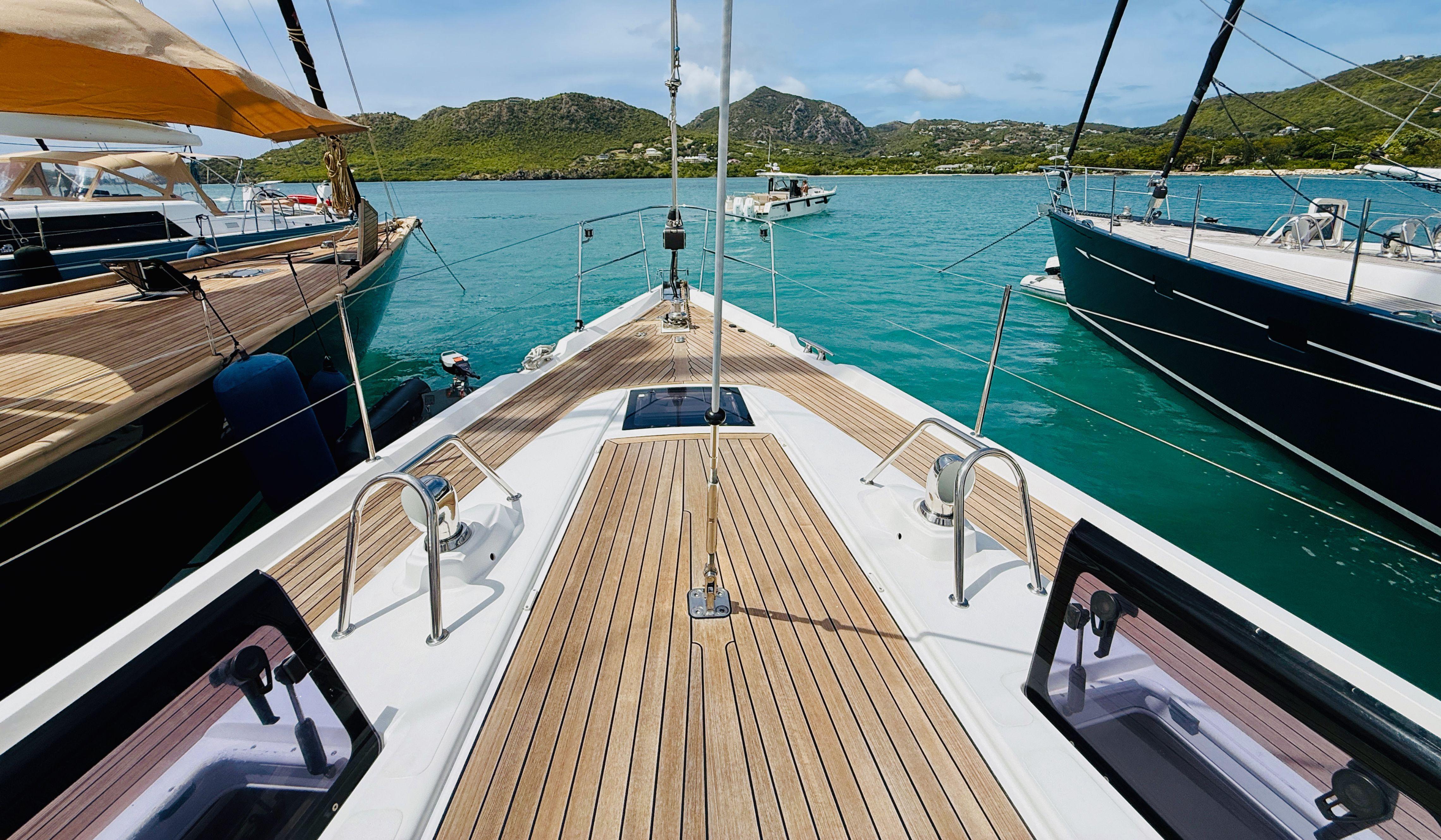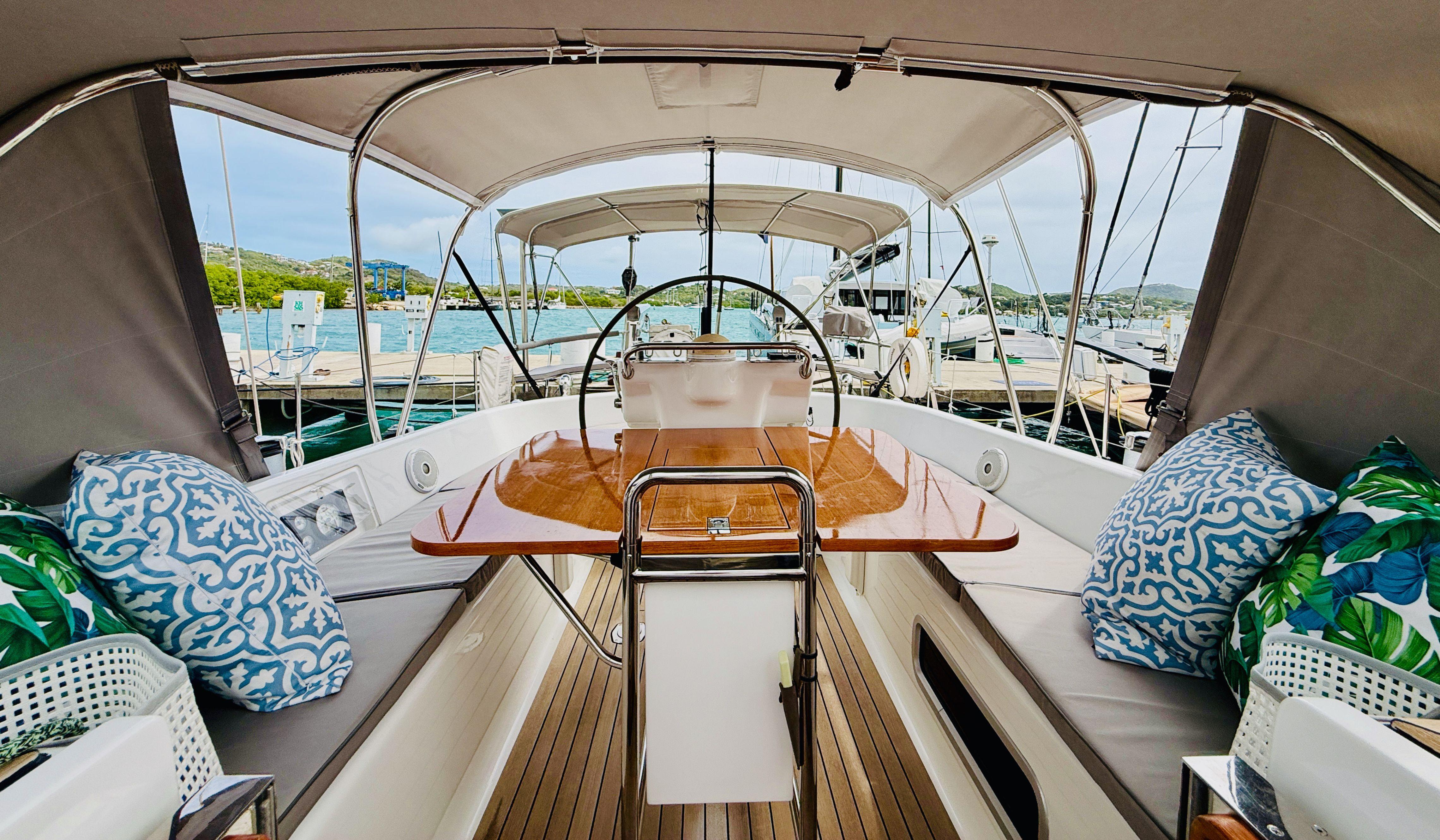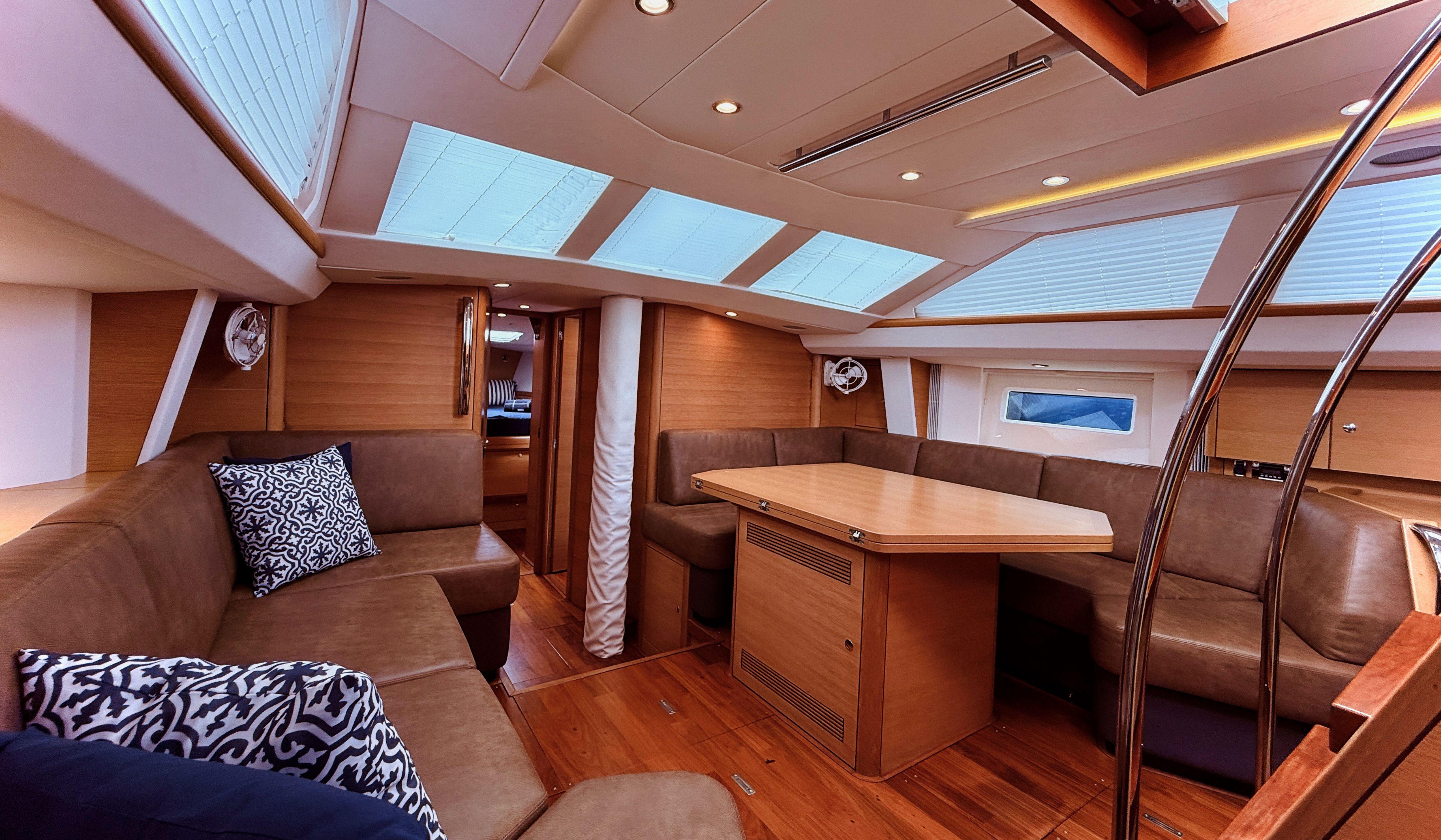 With sleek hull lines, a powerful rig, and a low-center-of-gravity bulb keel, the 545 delivers impressive performance—fast, stable, and comfortable—proven time and again at Oyster Regattas. Despite its performance credentials, the yacht is designed with cruising comfort in mind. The spacious cockpit is well-appointed, featuring a substantial fixed table ideal for socializing or relaxing underway.