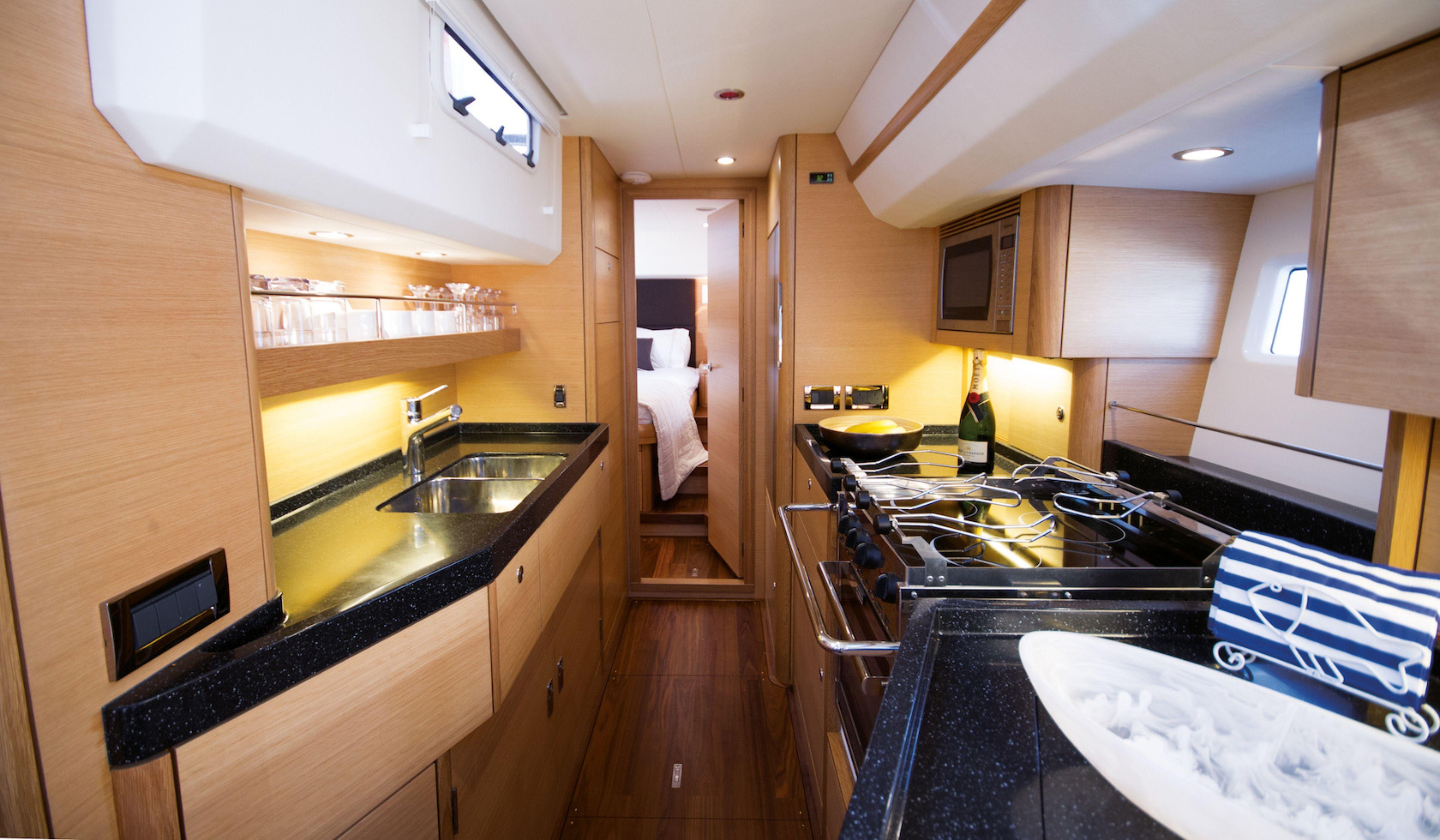 At just under 55 feet, the Oyster 545 is often considered the ideal size for a couple seeking true world cruising capability without unnecessary complexity. Ko Tangaroa benefits from a highly manageable sail plan, extensive electric winches, bow thruster, and well thought out deck layout, allowing confident short-handed operation. The deck saloon arrangement provides excellent visibility and light, while below decks the interior offers the warmth, practicality, and sea kindness for which Oyster is renowned, equally comfortable on passage or at anchor for extended periods living aboard.