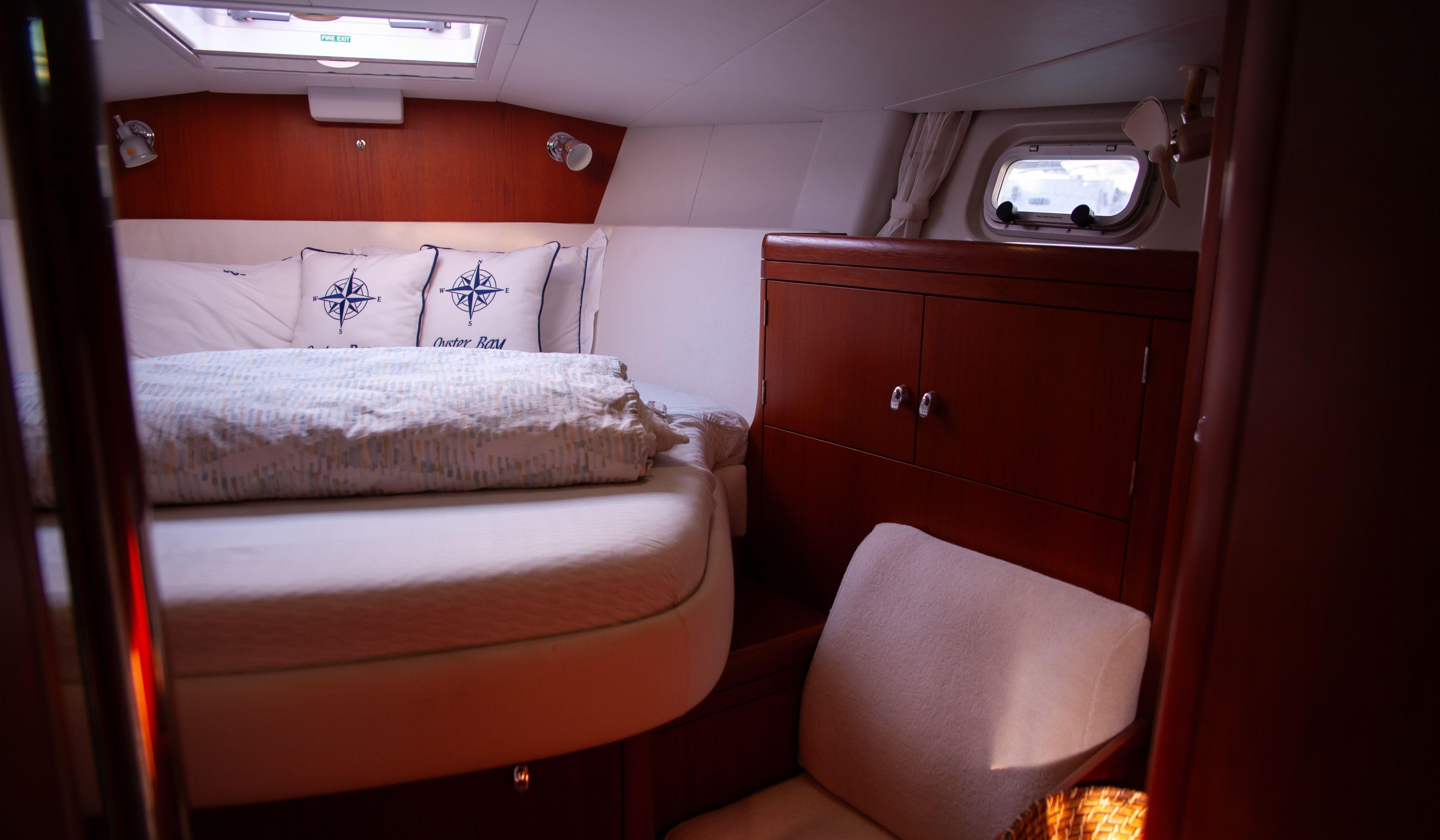 Oyster Bay is a desirable late-model G5 version, cutter-rigged and equipped with in-mast electric furling for both mainsail and genoa, allowing push-button control from the safety of the cockpit. With her standing rigging replaced in 2023, she offers total confidence at sea.
