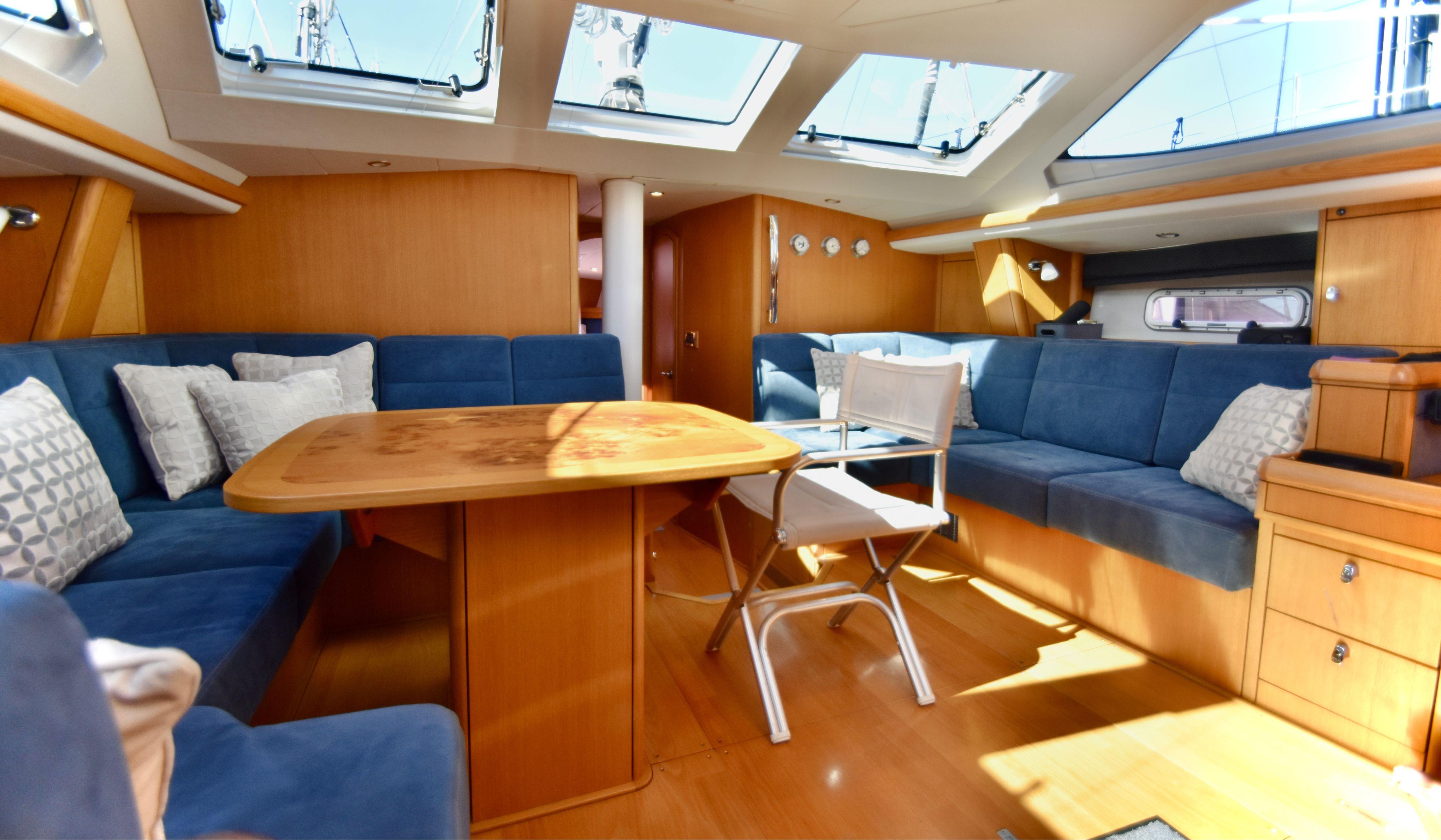 Subtle joinery enhancements included the addition of sculpted headliners, upgraded cabin doors and door furniture, custom air-conditioning vents and accent lighting in the saloon, and more contemporary styling in the heads. On the practical side, her standard specification was raised to include Formula spars, a Volvo D3 engine and Raymarine i70 sailing instruments.